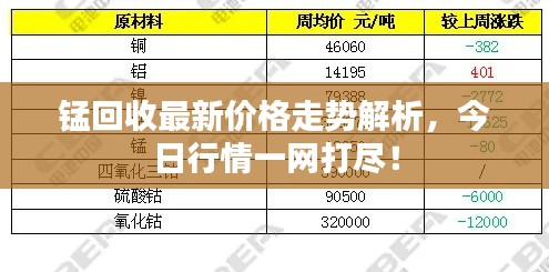 随着工业化的快速发展,金属资源的循环利用变得日益重要,在众多金属中,锰作为一种重要的工业原料,其价格走势一直备受关注,本文将探讨锰回收的今日最新价格走势。