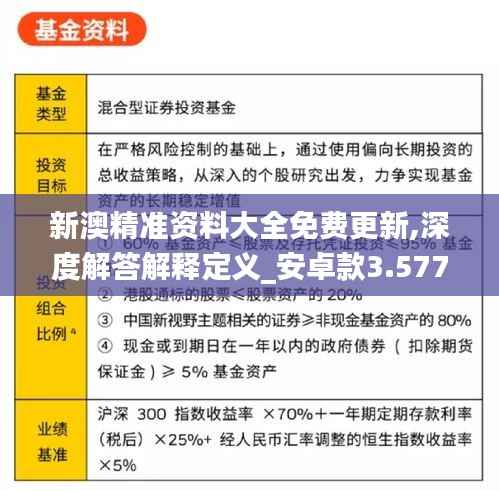 “新澳精准资料大全免费更新”紧跟政策更新,提供深度释义的平台,为用户提供前所未有的便利和效率,它充分利用了安卓大平台的特点,并且基于用户需求持续发展和优化其特性,希望本文能使您更全面地了解这一强大工具,并在实际应用中发挥其实用价值。