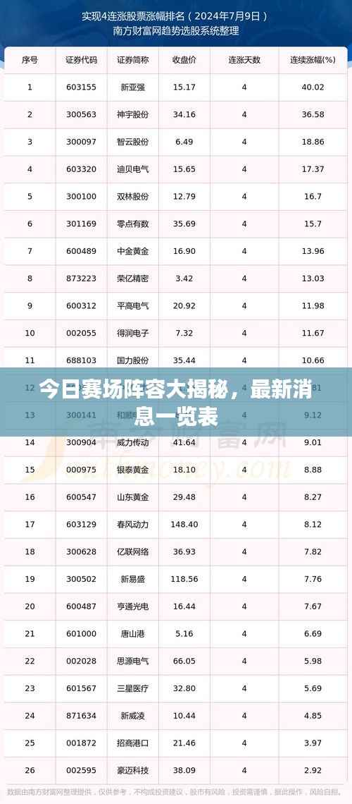 随着赛事的日益临近,全球体育迷的目光都聚焦在了各大赛场之上,我们有幸获得了最新的赛场阵容消息表,为大家带来最全面的参赛队伍和选手信息,让我们一起揭晓这场激烈比赛的神秘面纱。